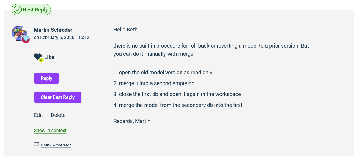 Questions with the "Best reply" will be marked as "Solved" in the Forum blog posts list.