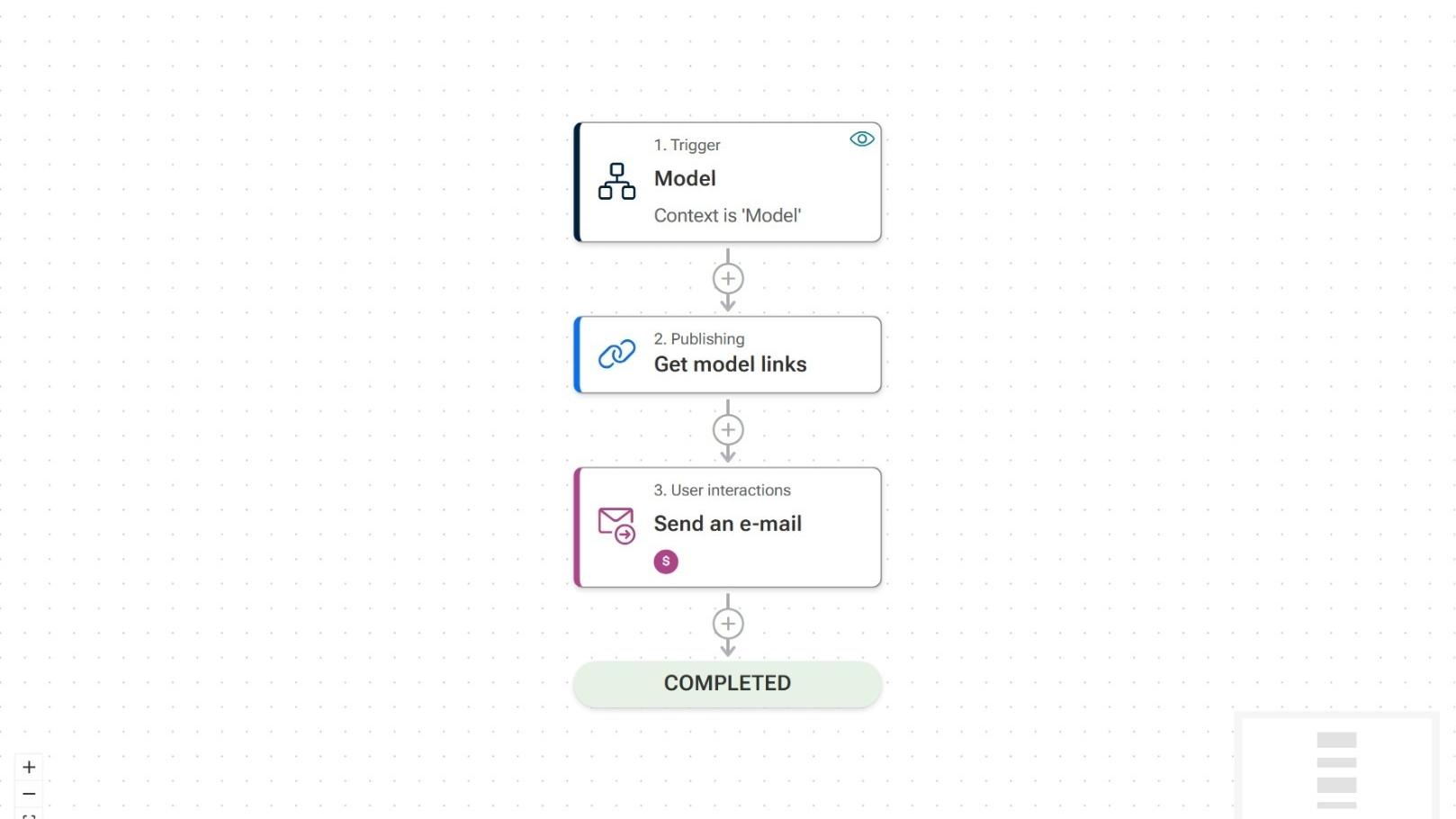 - Define the trigger β Start the flow whenever you select a model and want to share it.