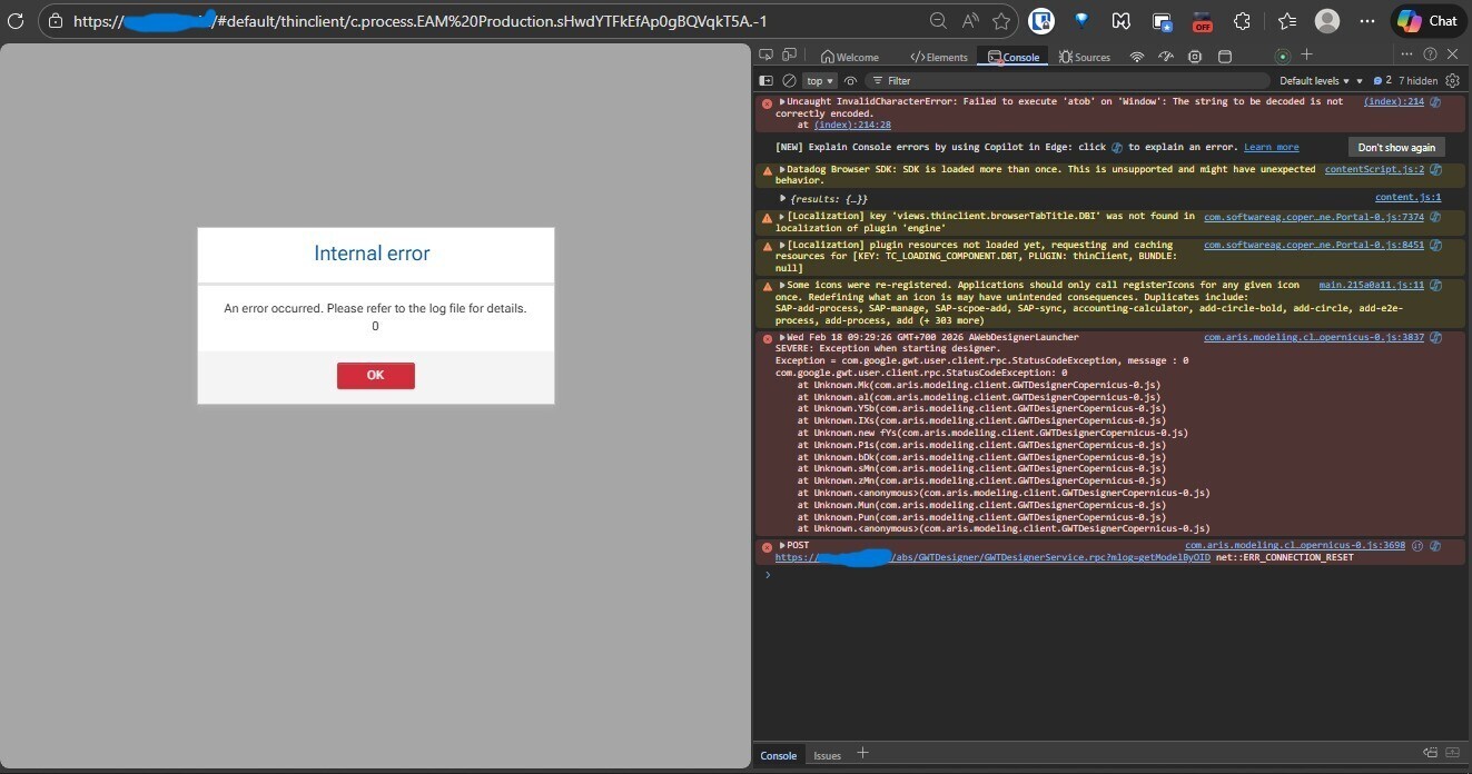My on-premise installed ARIS often getting error when access from Chrome/Chromium based browsers. And the dialog shows like this