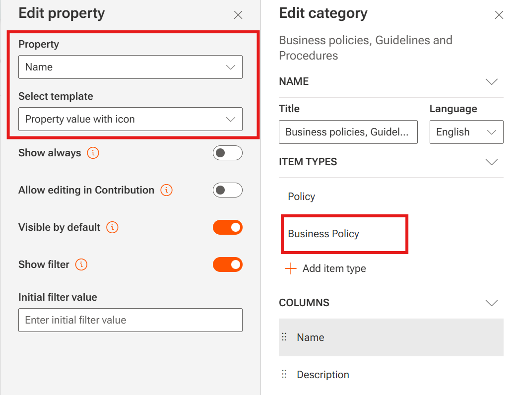 Updated Policy content type item: