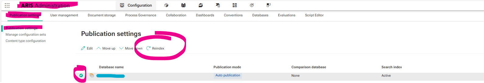 MM Martin Muhr on December 16, 2025 Hi, After Updating to the latest version our search results are always empty: Any Idea what to do? Tags #aris10 Bookmark Like Share Sign in or register to reply. Notify Moderator 1 Reply Sort by Date ASC Date DESC Likes Sort by Date ASC Date DESC Likes Veronika Ellermann on December 16, 2025 - 16:08 Hi, you first need to index the respective databases: Hope this helps. Best Veronika Like Sign in or register to reply. Notify Moderator