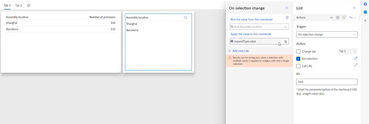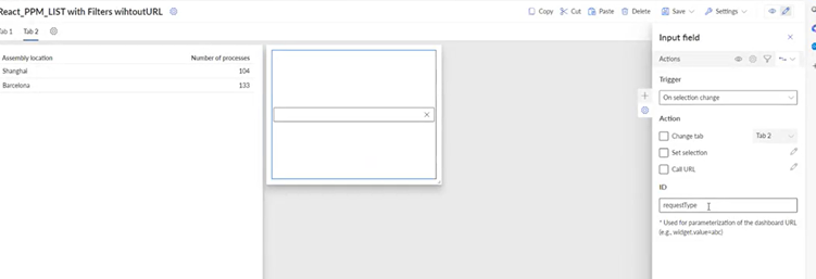 Pick the column you want to use for a filtercriteria and assign it to the user input you have defined on tab2